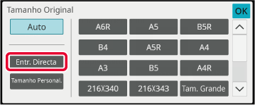 Toque na tecla [Entr. Directa] e introduza o tamanho de digitalização.