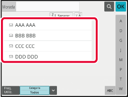 um destino de um livro de endereços global, tocar em [Procura de endereço global]