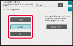 (Para BP-51C26/BP-51C31/BP-51C36/BP-51C45/BP-51C55/BP-51C65/ BP-56C26, é obrigatório o kit de expensão OCR.) Tocar na tecla [Modo Compressão] ou [Taxa de Compressão].