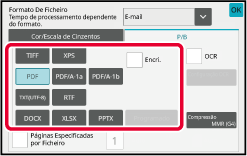 Tocar no separador [Cor/Escala de Cinzentos] ou [P/B] e selecionar o modo de formato para a digitalização.