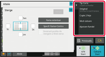 Din panoul de acţiuni, puteţi configura funcţiile sau combina