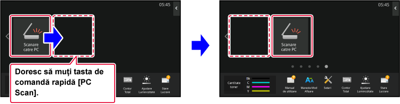 Tastele de comandă rapidă sunt mutate utilizând panoul tactil.