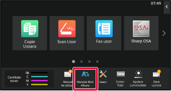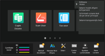 Setările sunt salvate în echipament şi aplicate.Într-un mod normal, cum ar fi Copiere sau
