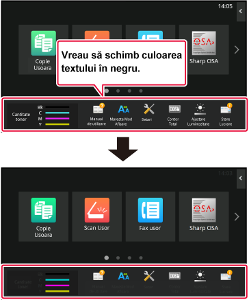 Doar numele poate fi schimbat din panoul tactil. Puteţi schimba