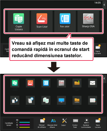 Setările sunt salvate în echipament şi aplicate.Puteți modifica poziția tastei [Ecran principal].