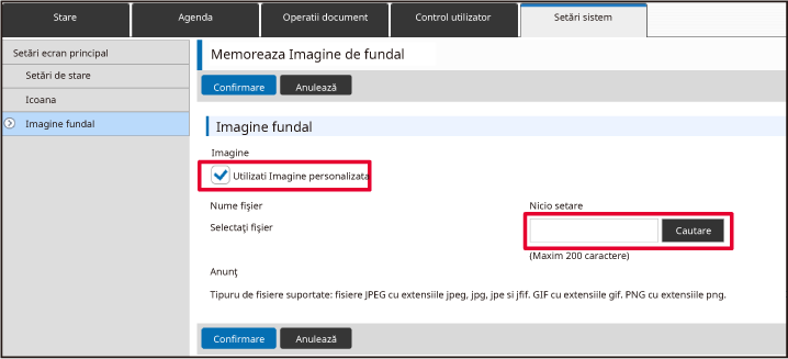 setaţi căsuţa de verificare [Utilizati Imagine personalizata] la