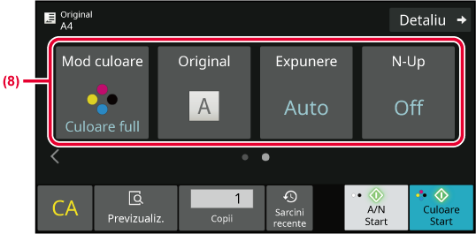 Modul uşor simplifică selectarea setărilor de bază pentru copiere.