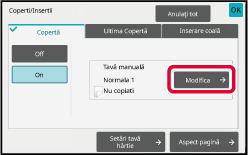 Modificaţi setările pentru coperţi sau coli de inserţie.