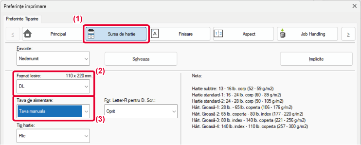 şi "Format Iesire" este setat pe [La fel ca Formatul Original], "Tip hartie" este