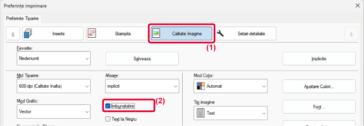 fi selectată din "Format Iesire".Această caracteristică permite imprimarea
