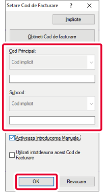 Puteţi introduce un cod de facturare cu ajutorul imprimantei