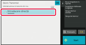 Selectaţi o adresă pe care doriţi să o înregistraţi în agendă din jurnalele de expedieri, apoi atingeţi scurt tasta [Noua inregistrare in Agenda] de pe panoul de acţiuni.