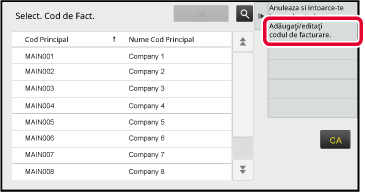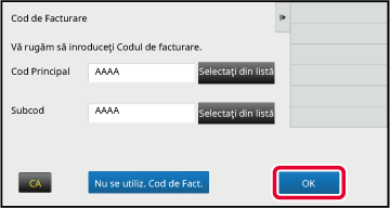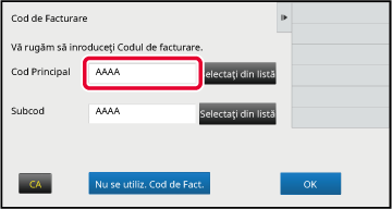 Când este afişată fereastra de introducere a codului de facturare, atingeţi tasta codului principal [Selectaţi din listă].