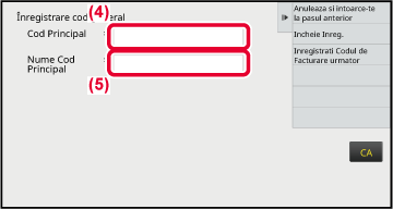 Când este afişată fereastra de introducere a codului de facturare, atingeţi caseta din [Cod Principal], apoi introduceţi codul principal.