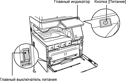 аппарат, нажав кнопку [Питание] и выключив главный выключатель,