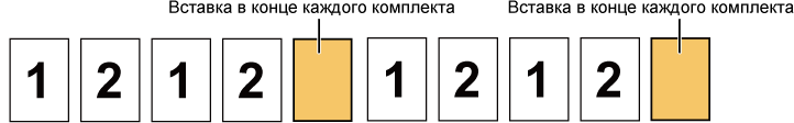 Позволяет сортировать и покомплектно выводить сканированные оригиналы. Пример: Если выбрано 5 копий в режиме сортировки ![]() |