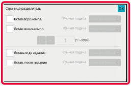 РЕЖИМ ПРОСТОГО СКАНИРОВАНИЯКоснитесь кнопки [Прочие], а затем — кнопки [Страница-разделитель].