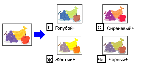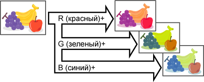 из трех цветовых составляющих: R (красный), G (зеленый), B (синий).