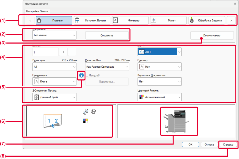 функций, связанных с макетом, таких как двусторонняя печать и печать