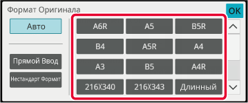 Коснитесь кнопки формата оригинала, который нужно вызвать.