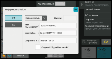 Ниже описан пример использования функции "Файл" в режиме копирования.
