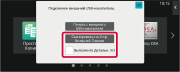 Когда откроется экран выбора действия, коснитесь кнопки [Сканировать на Устр. Внешней Памяти].