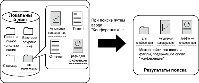 Поиск файла может занять много времени, если сохранено много файлов. Чтобы быстро найти файл, используйте функцию поиска в режиме хранения документов.
