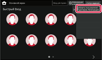 На панели действий коснитесь пункта [Добавить пользователя/ Редактиров. Регистрацию].