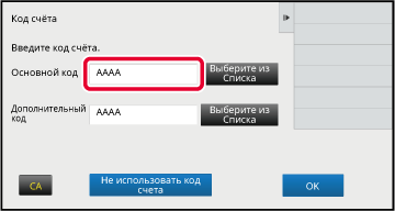 Когда отображается окно ввода кода счета, коснитесь поля [Основной код], затем введите основной код.