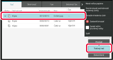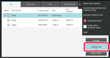 stavu úlohy sa zobrazí obrazovka stavu úlohy. Opätovným ťuknutím