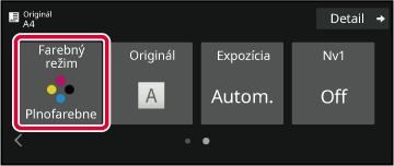 Zariadenie automaticky zistí, či každý originál je farebný alebo čiernobiely a náležite prepína režim (plnofarebný pre farebný originál alebo čiernobiely pre čiernobiely originál). |