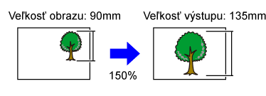 Pomer zmenšenia alebo zväčšenia sa automaticky vyberie na základe veľkosti originálu a vybranej veľkosti papiera.