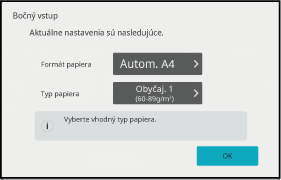 Klepnite na tlačidlo [Výber papiera] a potom na tlačidlo Bočný podávač.
