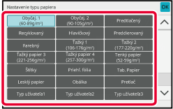 Klepnite na tlačidlo [Typ papiera], klepnite na tlačidlo nastavenia typu papiera a potom klepnite na tlačidlo [OK].