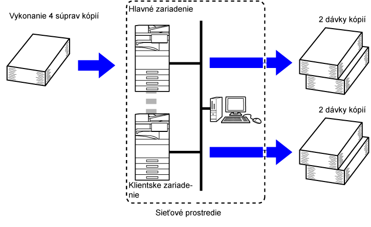 Dá sa nastaviť až do 9999 kópií (dávok). Uvedený počet kópií sa zdieľa medzi primárnou jednotkou a sekundárnou jednotkou. Ak je počet kópií nepárny, primárna jednotka urobí viac kópií ako sekundárna jednotka.