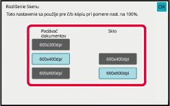 Rozlíšenie je možné nastaviť pre podávač dokumentov a predlohové sklo. Po dokončení nastavení klepnite na tlačidlo [OK] a potom na tlačidlo [Späť].