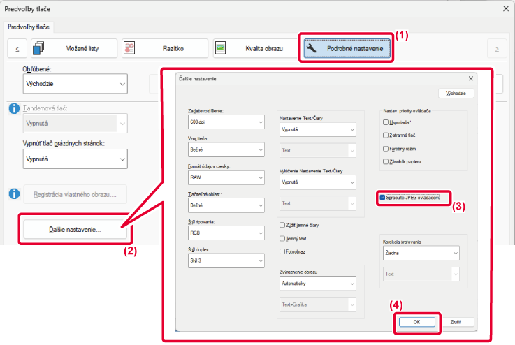 Pri tlači originálu, ktorý obsahuje obrázky JPEG, môžete vybrať,