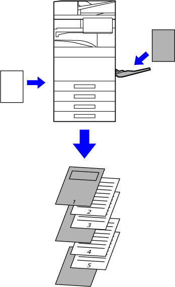 Ak sú napríklad pomiešané tlačené obrázky veľkosti A4 (8-1/2" × 11") a A3 (11" × 17"), môžete prehnúť iba veľkosť papiera A3 (11" × 17") na veľkosť A4 (8-1/2" × 11"). Kópie vystupujú po jednotlivých hárkoch. |
