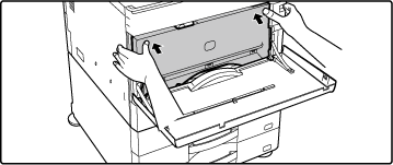 Öppna samtidigt som du trycker på de konvexa delarna på båda sidor.