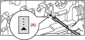 Reservrengörare förvaras i behållaren för överskottstoner. Fatta tag i rengörarens ände och dra ut den ur behållaren för överskottstoner.