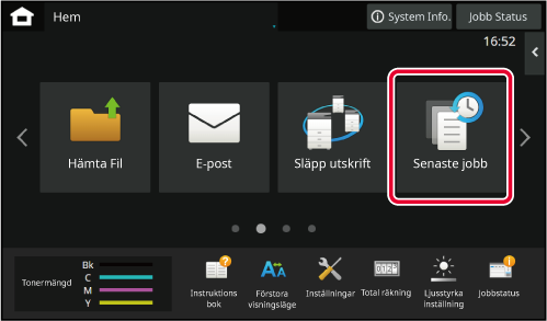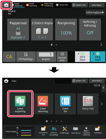 Startskärmen visas på pekpanelen när du trycker på [Hemsidans namn].