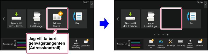 Inställningarna lagras i maskinen och aktiveras.Du kan lägga till snabbknappar på startskärmen