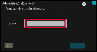 Administratörens lösenordsskärm visas. Ange lösenordet.