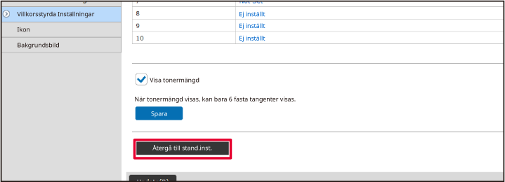 Klicka på [Villkorsstyrda Inställningar] och [Återgå till grundinställning].