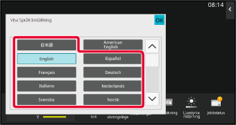 För dessa inställningar kanske du måste ange ditt användarlösenord. Om du inte använt användarautentisering måste du ange administratörslösenordet.Markera språket som du vill ändra i listan.