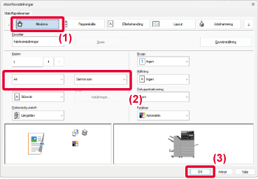 Utskriften börjar.Skrivardrivrutinens inställningsskärm