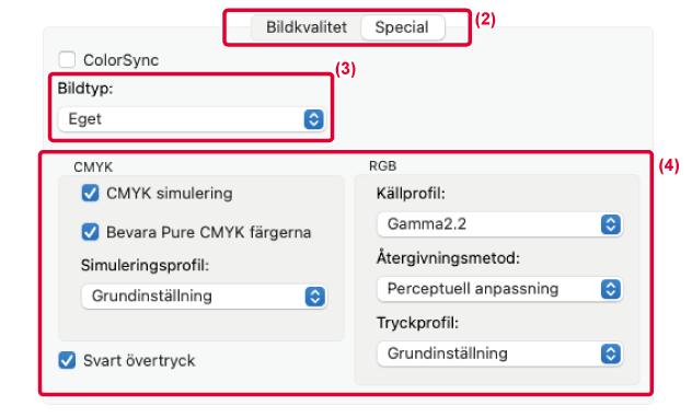 i macOS markerar du kryssrutan [ColorSync] så att markeringen