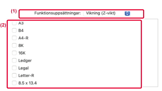 Flera ark viks tillsammans på mitten. När en efterbehandlare med sadelhäftning (stor sorterare) är installerad kan ett eller flera ark väljas. |
