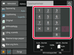 Tryck på en sifferknapp för att ange destinationsnumret direkt eller sök och hämta adressboken eller numret.