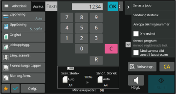 Tryck på knappen [Direktval] eller på [Faxnummer] för att mata in destinationens faxnummer.
